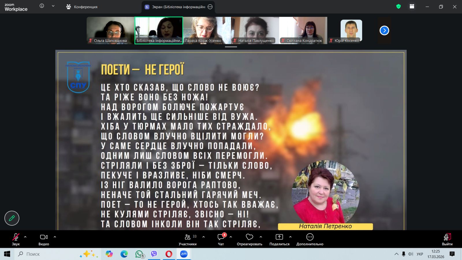 До Всесвітнього дня поезії (21 березня 2026р.), у співпраці з Науковою бібліотекою Сумського державного педагогічного університету було проведено тематичний захід «Наше слово – зброя» у форматі відкритого поетичного мікрофона.