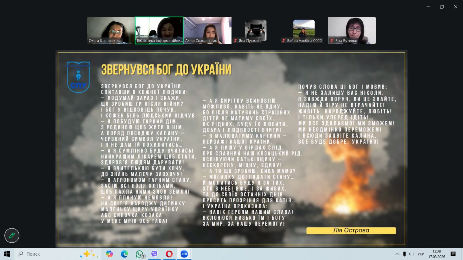 У межах заходу свої вірші читали здобувачі вищої освіти: Карина ДЕЙНЕКА (0011 група), Яна ПУСТОВІТ (0044 група), Альбіна БАБИЧ (0022 група), Аліна СОЛОДОВНИК (0044 група).